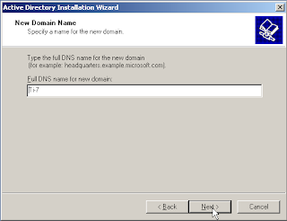 - Untuk membuat domain baru di dalam sebuah forest pilih options yang pertama (domain in a new forest)
